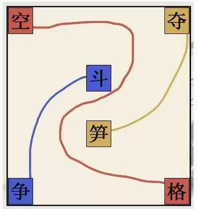 1、和作词留一线玩法相同,将相同颜色的字连接,并且连线不能交叉