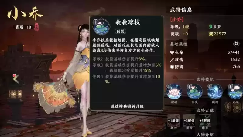 小乔技能——可以恢复友方生命值2、合理利用具有控制技能的武将如果拥有控制技能的武将,能对敌方武将造成连续控制,那么不仅能够在短时间内给己方提供便利的输出条件,也可以让降低对方武将对你的威胁。尤其当遇到强力武将的发威时刻时,比如吕布变身,又或貂蝉在对你的队友施展持续魅惑时,连续的控制和打断将比输出还要重要。例如曹仁,可以利用曹仁冲入敌阵,眩晕敌人并将敌方推到适合作战的位置,同时建立起保护屏障,让队友在屏障之中获得保护。这样能够最大化己方的优势。