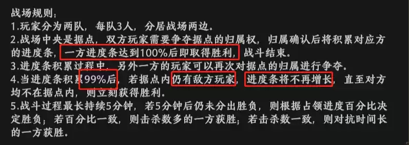 4.熟读战场规则,不要忘记占领据点!3v3的获胜技巧其实也涵盖在战场规则之中。在混战之中,很多朋友都会上头,甚至会追着敌方全场乱窜,完全忘记占领据点,最终遗憾落败。
