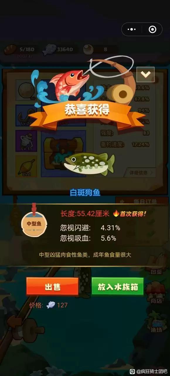 2、食人鱼使用商店的蚯蚓拟饵钓,20钻石买10个,还可以,概率钓起,所以建议先升级渔具再来钓