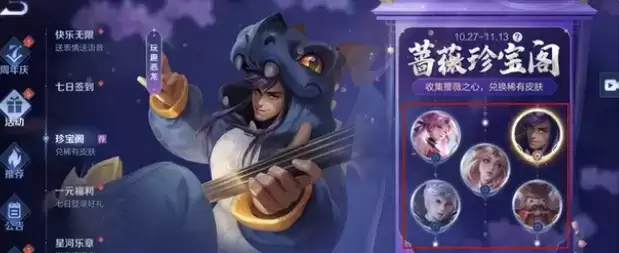 蔷薇珍宝阁活动页面连点右下角花藤两次可以获得彩蛋奖励两个蔷薇之心,有几率额外获得内测皮肤自选宝箱,每个账号只能获得一次彩蛋奖励。