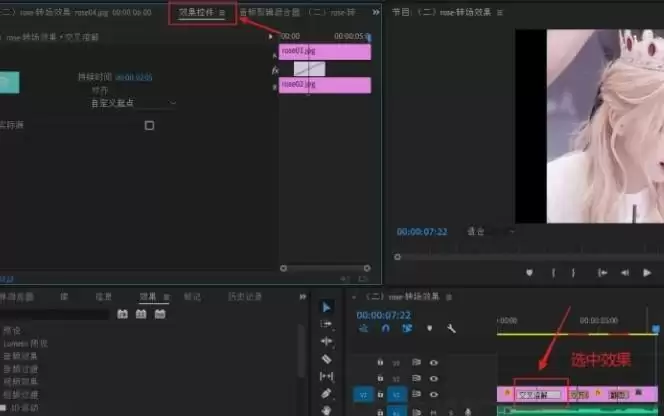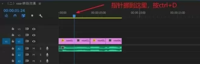 最简单的转场,就是指针挪到两个图片素材中间,然后按ctrl+D