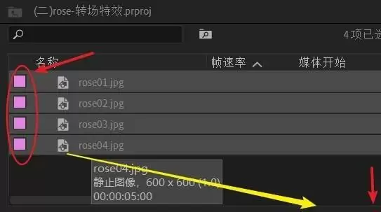 在这里讲一下素材管理,我们可以在pr里把导入的素材分类放到不同的文件夹中,方便管理。