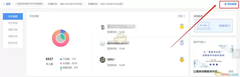 1、手机查看:点击结束授课以后,可在手机端和网页端的【课堂小结】中查看进入课堂的人数,并可查看到签到和未签到的学生数据: