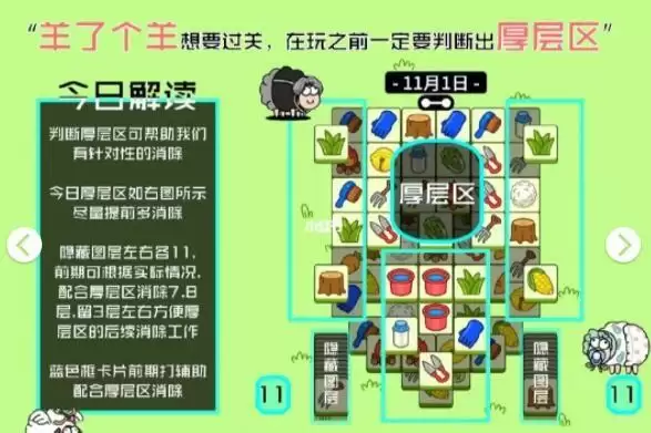 1、羊了个羊11.1主要消红色区,红色区里面有个大别野,主要消别野特别厚。
