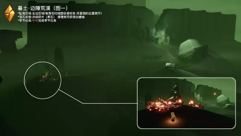3、落石类型:冷却碎片(黑石),清理完可获得白蜡烛