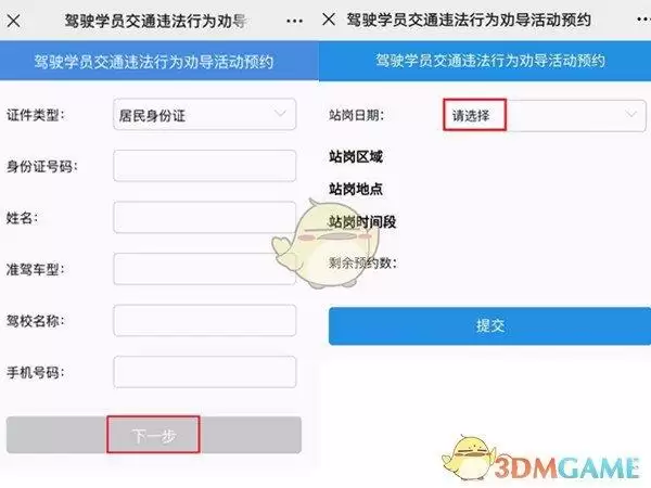 5、将个人信息填写完整,点击下一步,挑选需要的站岗日期。