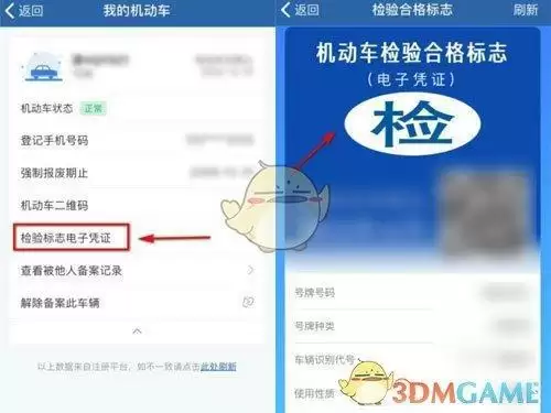 3、找到检验标志电子凭证就可以查看到车辆的电子免检标志了。