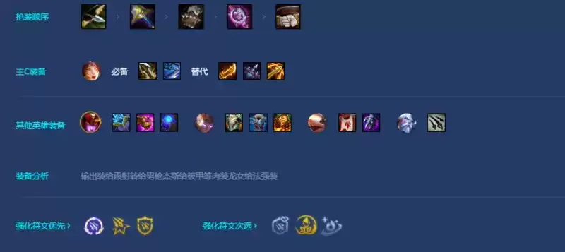 第一种是高射霞后排全都是迅捷射手的情况下可以都站最后一排,但是要小心婕拉!霞和格雷福斯必须和有破甲的人站一起,没有轻语的话就只能靠图奇啦。要时刻注意赫卡里姆的对位,杰斯更新之后没有了控制,霞的体系还是非常需要人马那一下控的。