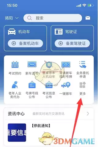 1、打开交管12123,点击右下方更多。