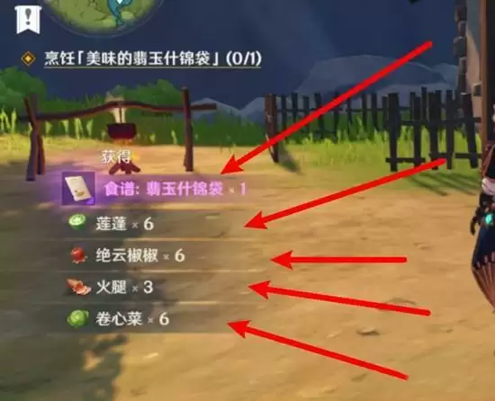 7、帮香菱打完下手后,她就会奖励我们翡玉什锦袋食谱。