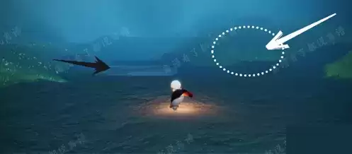 8、下去之后我们往后看,再次叫一声可以看到蓝色但我光点,等我们游出水面再次起飞即可,否则会飞出去,然后一直向着蓝色的光点飞去;