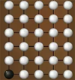 3.棋子拿法:棋子每回拿到三的倍数就能赢,必须保证你拿完棋子后,上面剩余的白色棋子为奇数就可以了。你1他1你1,后面他先拿,或者你1他2,这就三了,你再拿回到111或12。