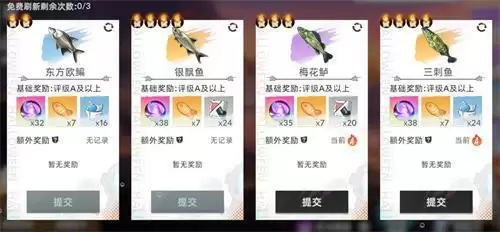 2.当钓到的鱼达到一定品级时,还可以获得额外的奖励,算上额外奖励所有品级的任务单次可获得的小鱼干数量都是10。