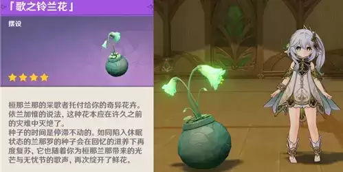 兰加惟:这个孩子就交给你吧。这是歌之铃兰花,喜欢温暖的歌声,在过去,也是我们采歌者的象征。和她一样的花已经在桓那兰那毁灭的时候一同灭绝了,只剩下一颗种子。