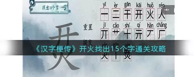 汉字梗传是一款休闲益智的文字冒险闯关的手机游戏,游戏中开火找出15个字怎么过,这一关卡是找字游戏,大家需要在开火找出15个汉字后才能通关。下面是小编给大家带来的《汉字梗传》开火找出15个字通关攻略,感兴趣的小伙伴们一起来看看吧。
