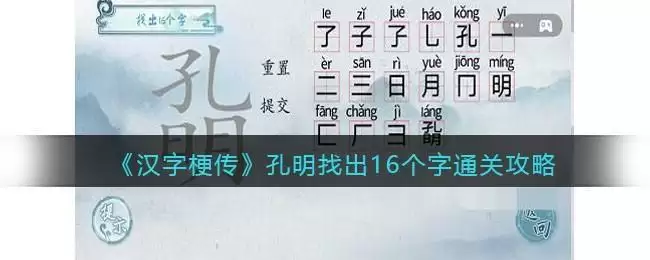 汉字梗传是一款休闲益智的文字冒险闯关的手机游戏,游戏中孔明找出16个字怎么过,这一关卡是找字游戏,大家需要在孔明字上写出16个汉字后才能通关。下面是3DM小编给大家带来的《汉字梗传》孔明找出16个字通