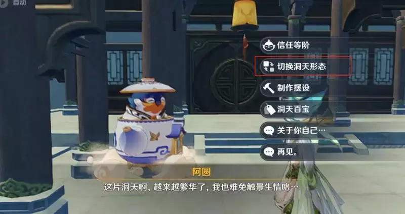 2、使用完「烟林之真果」后,继续跟阿圆对话选择“切换洞天形态”