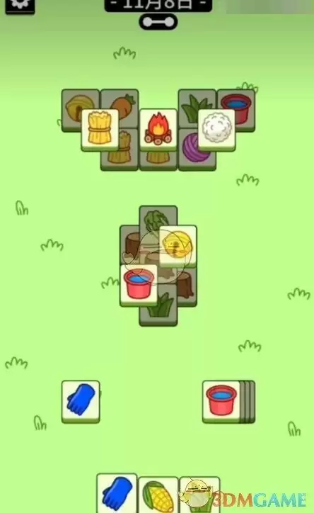 2、同层可以三消的就先消除同层,没有的话就需要查看下一层的物品,然后将需要的物品的上方的道具放置到槽中获得下方的道具。