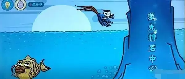 将右边石山上面所有的字都点灭,只留下激光排石中心六个字即可;