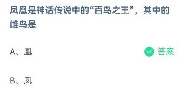 2022支付宝蚂蚁庄园11月10日的题目已经更新了,今天的题目为:凤凰是神话传说中的百鸟之王其中的雌鸟是?凰还是凤呢?正确答案是什么,可能很多小伙伴可能还不太清楚。下面小编就为大家带来了正确答案分享,希望能帮助到你。