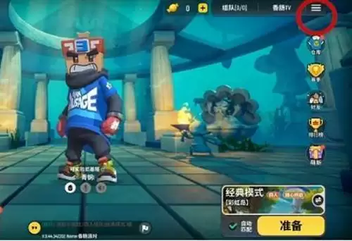 1、进入香肠派对主界面,点击右上方的“三条杠”。