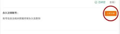 5、找到永久注销账号的功能,点击“立即注销”。
