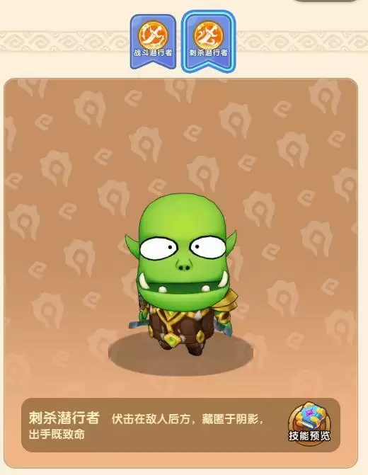 呆贼属于刺客类型,可选战斗潜行者或者刺杀潜行者,前者更偏向爆发近战伤害,后者应该是可以隐身切后排的,听起来都挺炫酷。