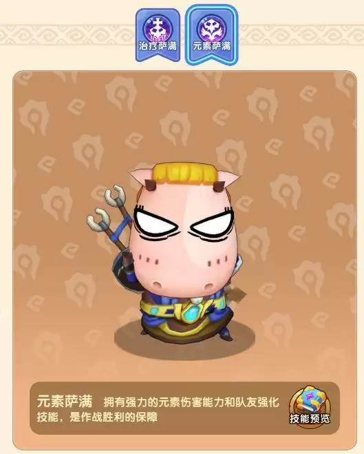 傻馒的两个职业对团队都很有帮助,治疗萨满顾名思义就是奶妈,在团战中奶妈是必不可少的角色。而元素萨满则是全队增益,简单来说就是输出防御拉满了。