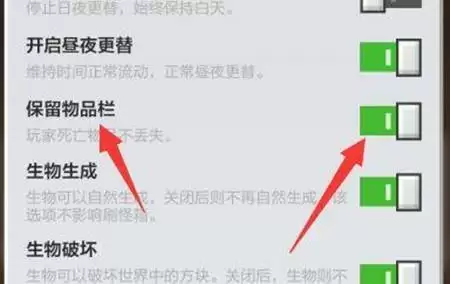 5、打开保留物品栏,这样死亡后物品就不会丢失了。