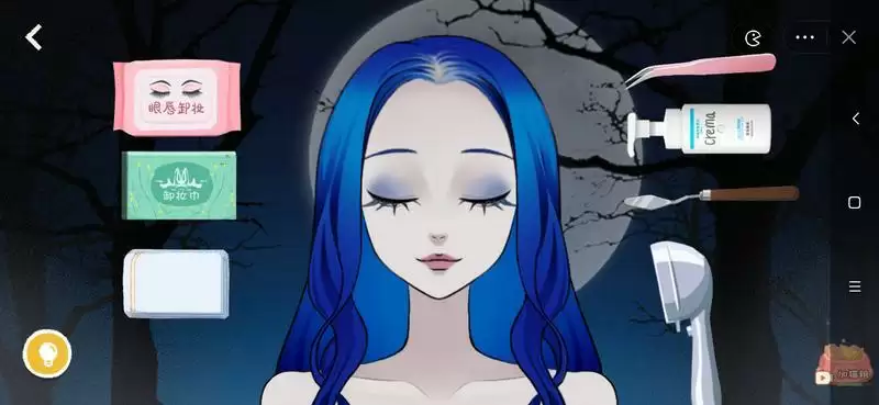 1、这关我们要给新娘卸妆,首先点击取下新娘的头纱和假发,才会出现下图中的卸妆用品