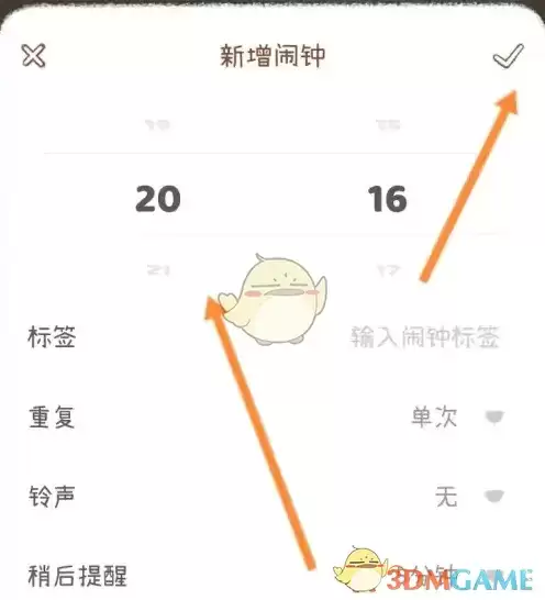 3、最后选择闹钟时间,点击下面的✓图标即可。