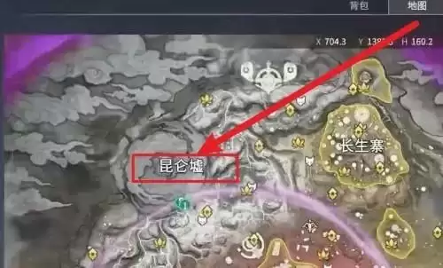 1、玩家们点击右上角的地图,找到昆仑墟;