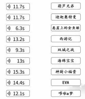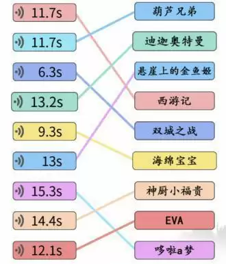 2、玩家们根据左边的语音内容连线,右边对应的动漫名称;
