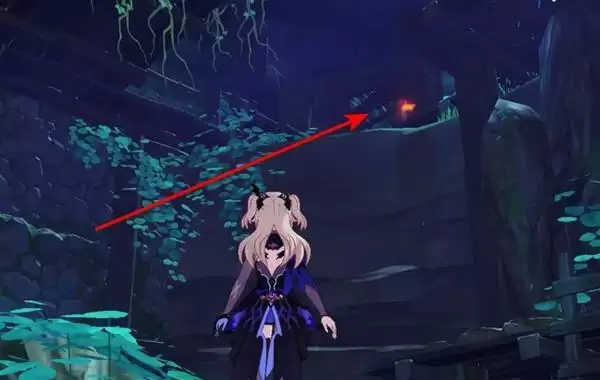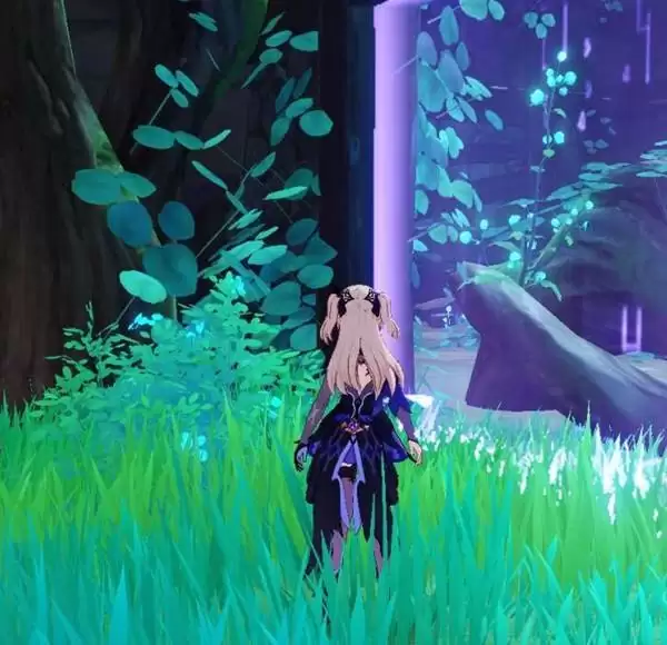 2、把视角转动到边上的悬崖上,飞过去拾取雷电种子。