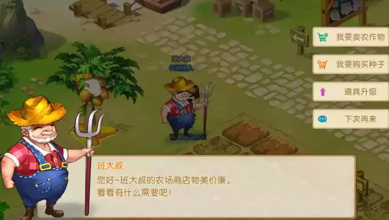 在农场中,我们可以通过农场商人吉瑞购买道具进行种植。农场商人可以出售种子,升级农具、出售宠物粮等农场外道具及回收农产品作物等。需要注意的是,种子购买有每日上限(含单个种子上限及总共买上限。如我一天最多可以买10个西瓜种子,总共一天最多可以买不区分类型的50个种子)