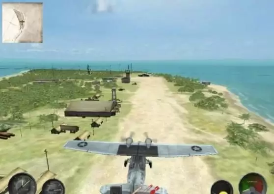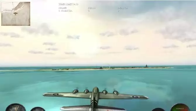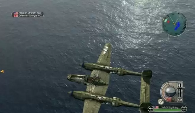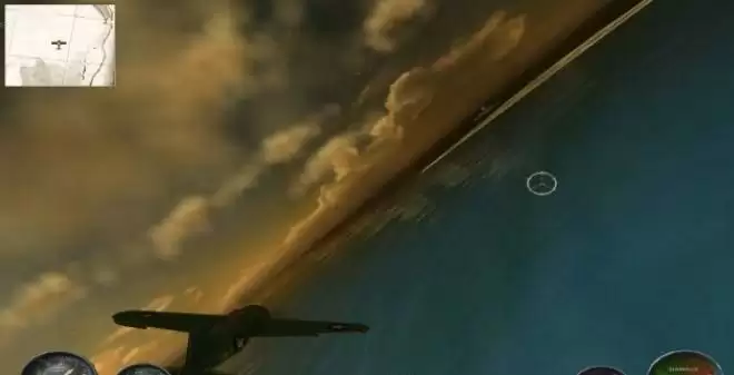 然后掉正机头直飞,马上就可以看到己方的船队,这时上面已围满敌机,在过去的路上用机枪(鼠标左键)自动瞄准功能就可以基本上消灭半数以上敌机了,再几个来回消灭所有敌机过关。