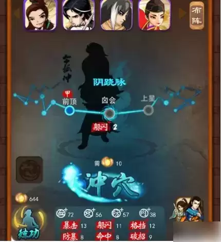 开脉后,点击“冲穴”打通上面的所有穴位即打通了这条经脉。