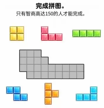 1、这一关是将6块俄罗斯方块放入中间的大格子。