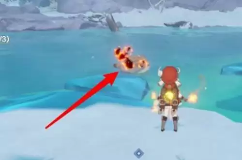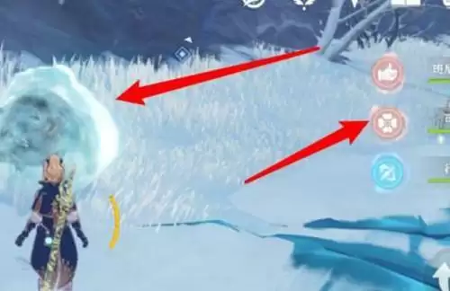 2、在雪山上找到被冰冻住的野猪,得先帮它脱困。