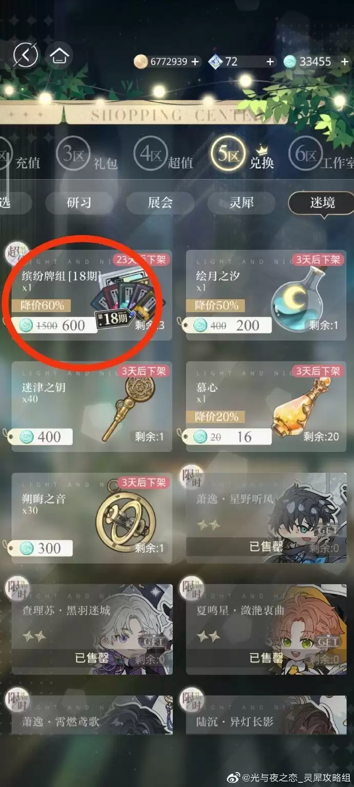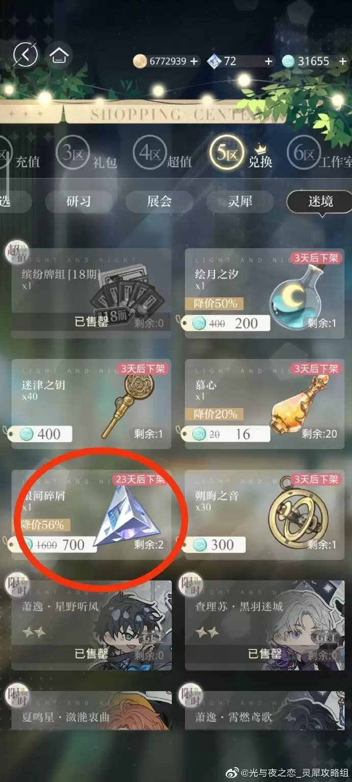 ①今天在邮箱可以免费领取一组第18期真心话大冒险牌,剩下的三组需要用在购物→五区→迷境,用【星旅币】兑换,当期兑换三组只需【1800星旅币】(一定要记得兑换当期!);