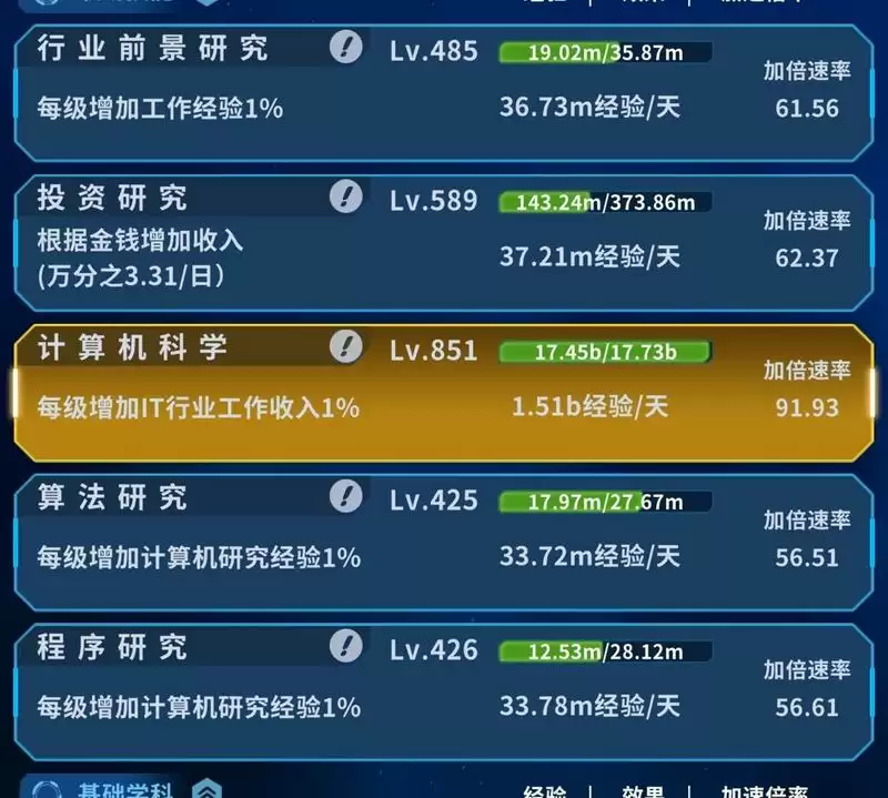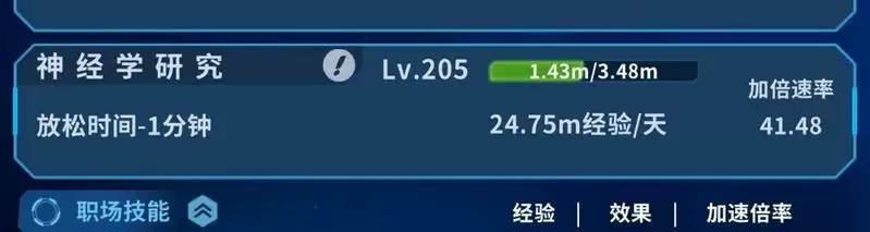 tip:基于每次的各科技等级(可能是最高值?)可以给下一次提供高额加速倍率,打工职业可提供低额加速倍率,所以快50岁时雨露均沾一下很划算。