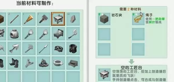 2、准备4个岩石块和4根绳子,制作出空的工匠台。