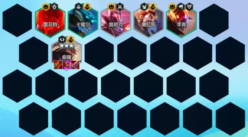 泰隆三星后升级6人口开3混沌+3超级英雄,如果阵容3星比较少,触发超级英雄效果不明显,可不开3超级英雄羁绊,先开2福牛增加泰隆的攻速与保命能力。