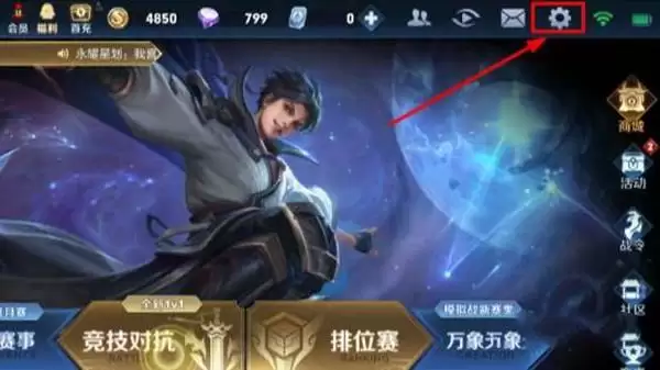 1、进入王者游戏大厅,点击右上方的【设置】按钮。