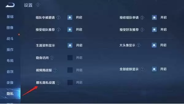 4、找到“赠礼隐私设置”,把它关闭就可以了。