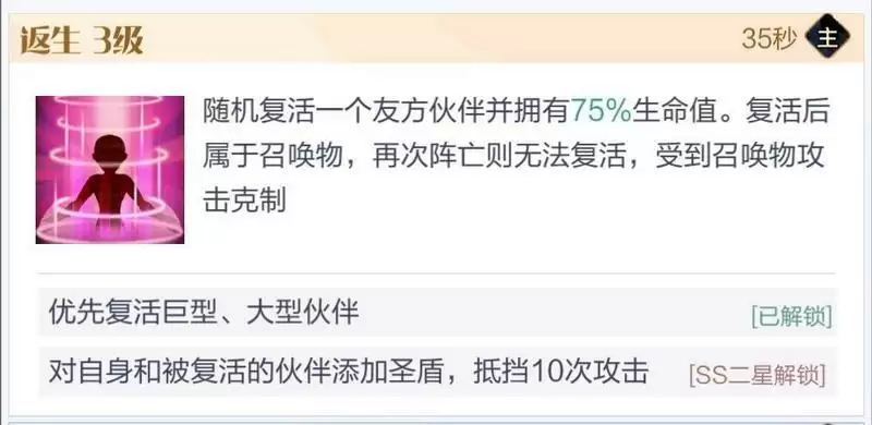核心技能,能够稳定复活巨型大哥,比蒙和黑德斯复活后前排能顶非常久。