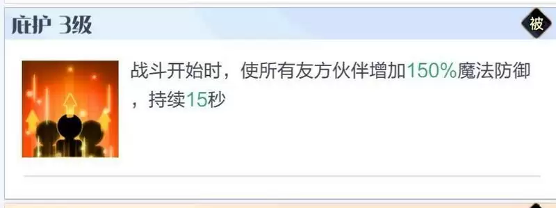 战吼技能群中的小弟,因为现在大家阵容的输出位普遍都是魔法输出,所以这个技能也很强,只是和另外三个战吼技能比还是差了一些。