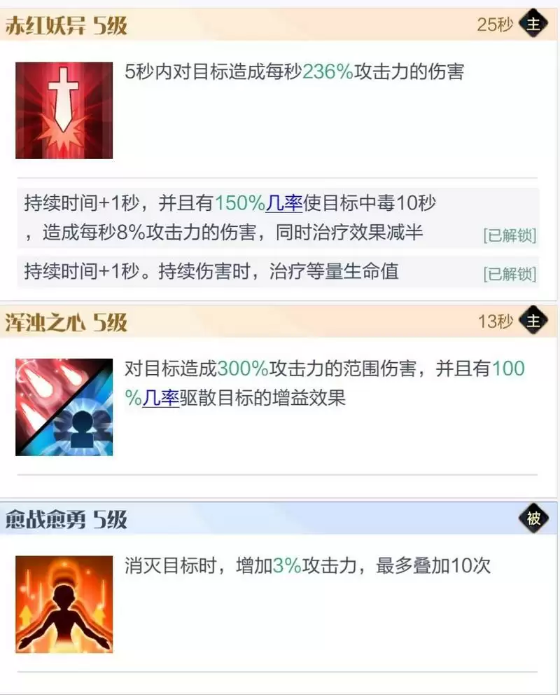 核心技能,算是补充前排坦度,战力相当的情况下能让自己比对面前排顶更多时间。