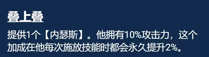 3星内瑟斯无装备就有146攻击力且其技能也是纯物理伤害,技能非常吃攻击力,叠加攻击力到高层数,“叠上叠”不仅于此,内瑟斯还搭配泰坦这件装备,来进一步增加攻击力与法强,一次技能就可造成千伤,一棒子下去就能秒人。